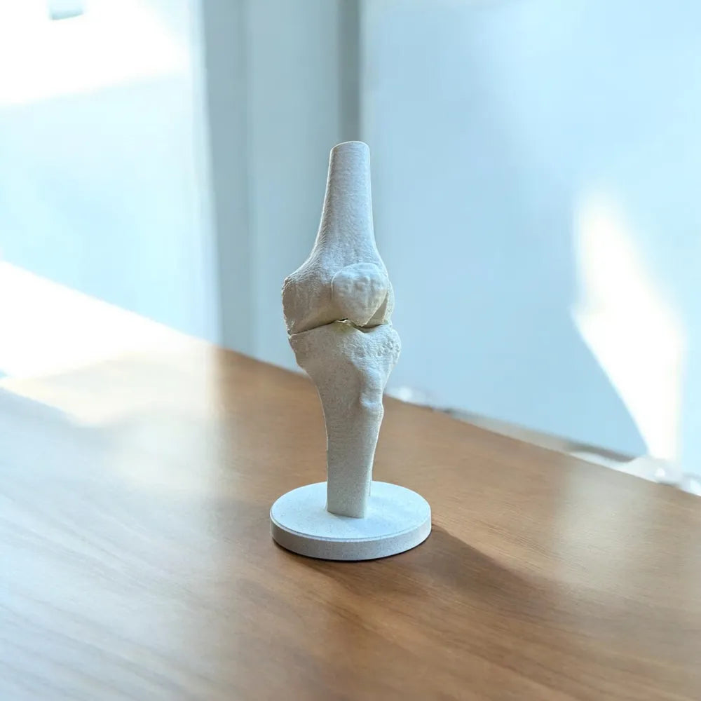 Este modelo, compuesto por fémur (hueso del muslo), tibia (hueso de la espinilla), rótula (patela) y peroné (hueso de la pantorrilla), se ha creado a partir de una tomografía computarizada real de una persona, por lo que los huesos son anatómicamente correctos Sin embargo, este modelo no incluye tejidos blandos como los meniscos o ligamentos. Cuenta con imánes para una mayor facilidad en el montaje y desmontaje.