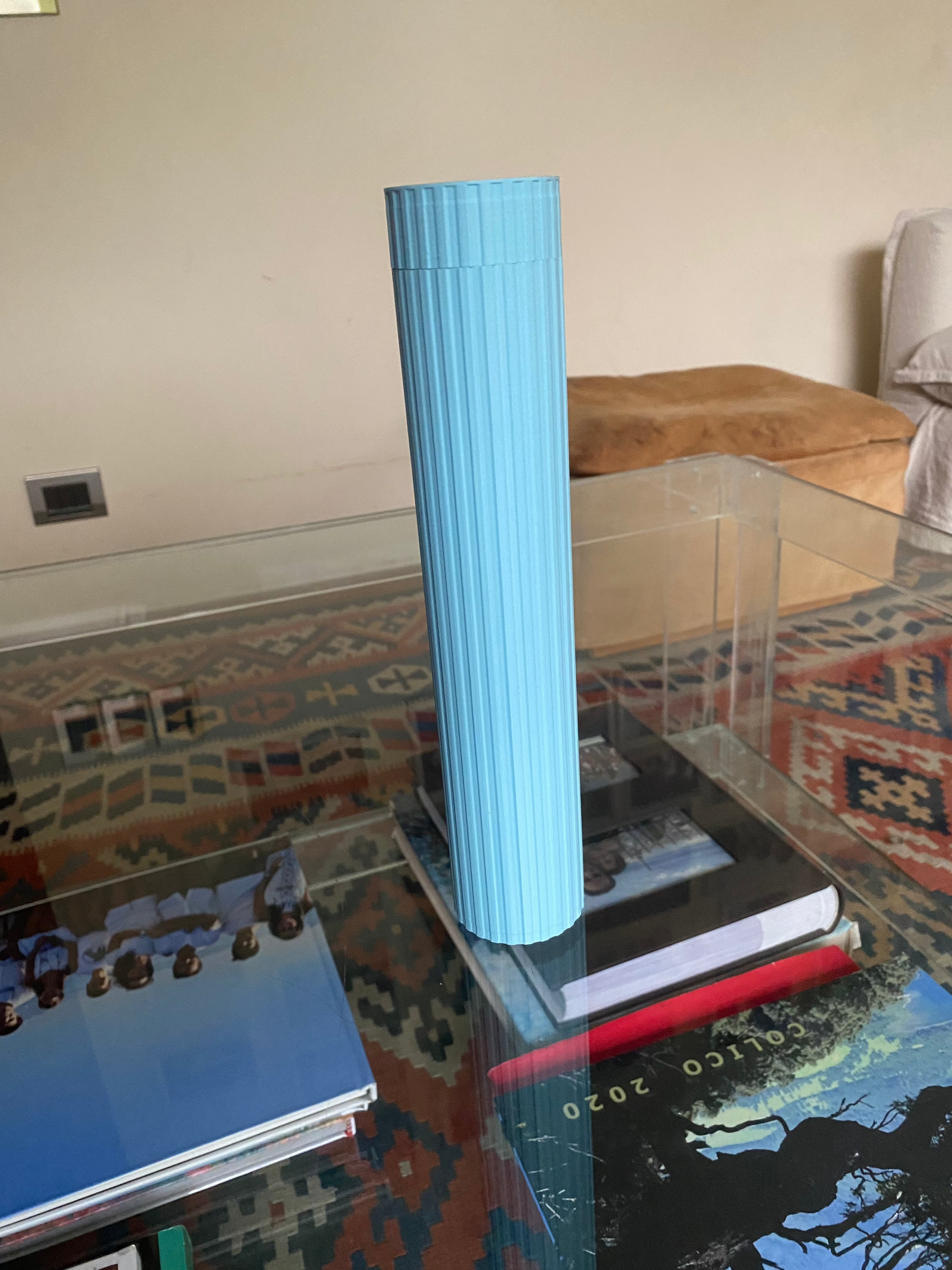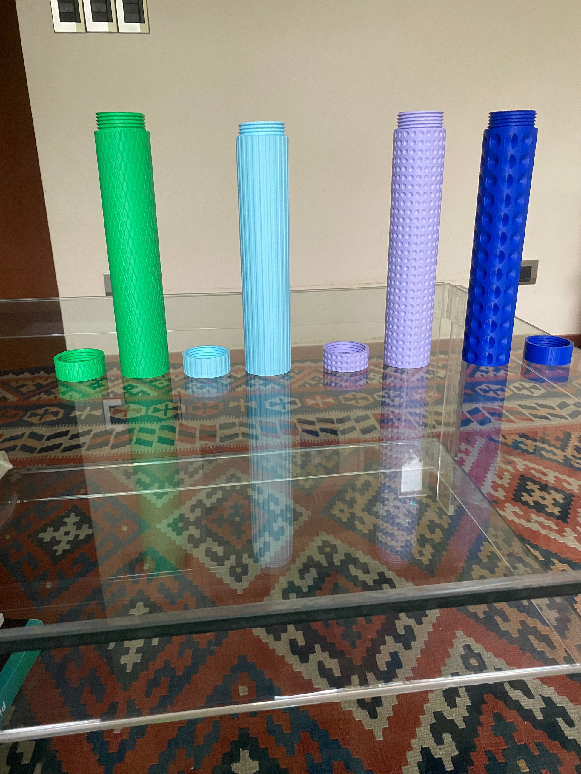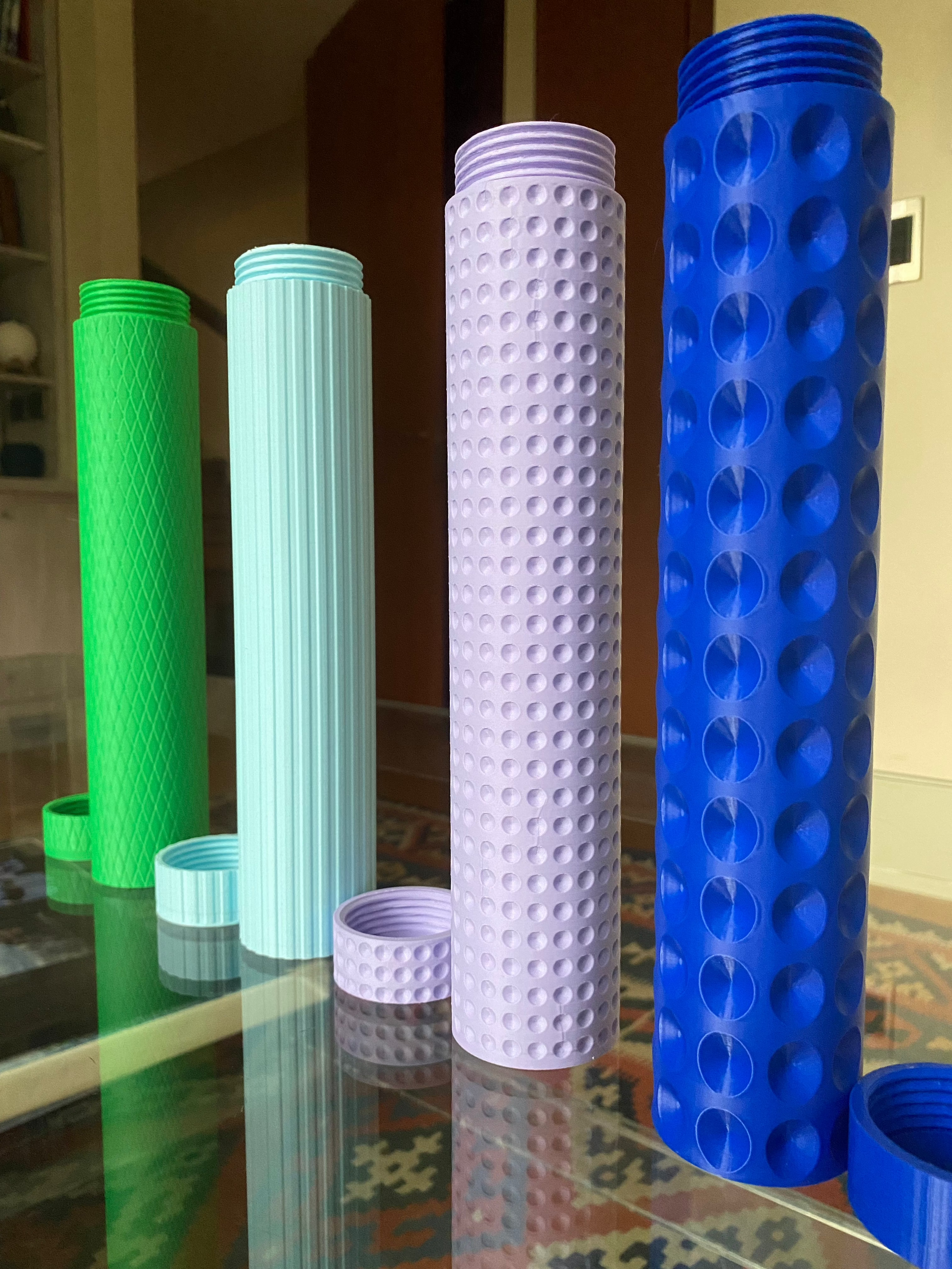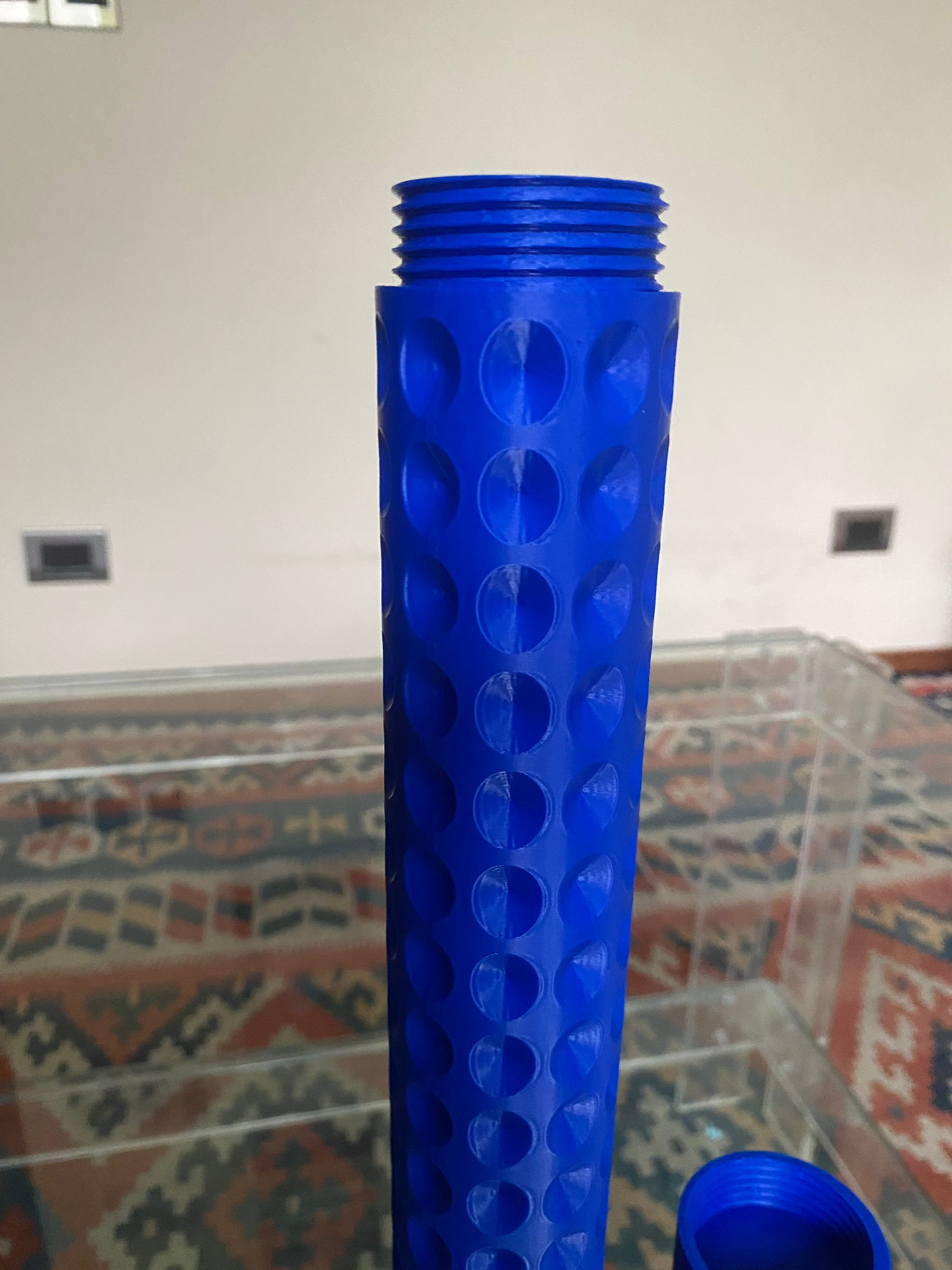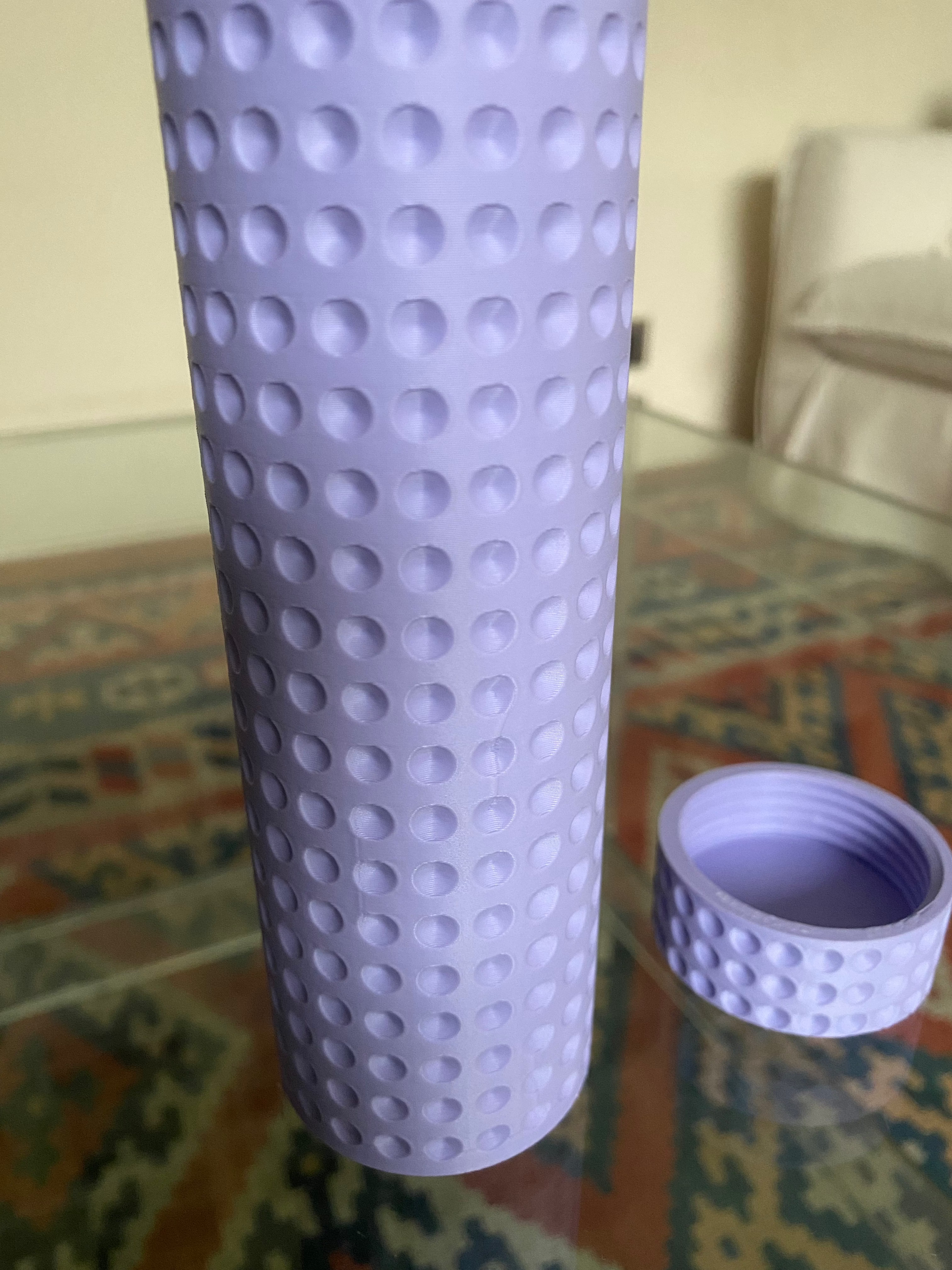 Mide 25 cm de alto y 5 cm de diámetro, ideal para llevar en cualquier bolso.