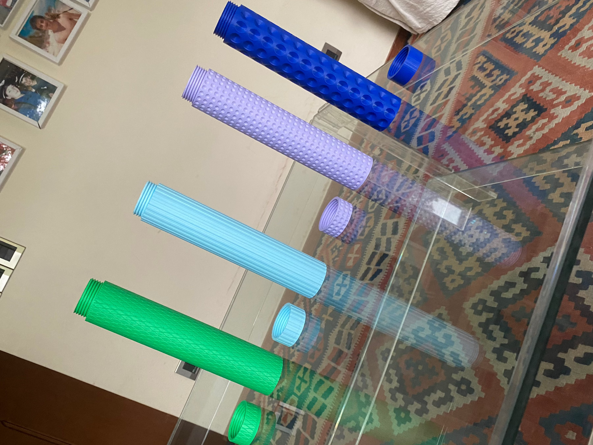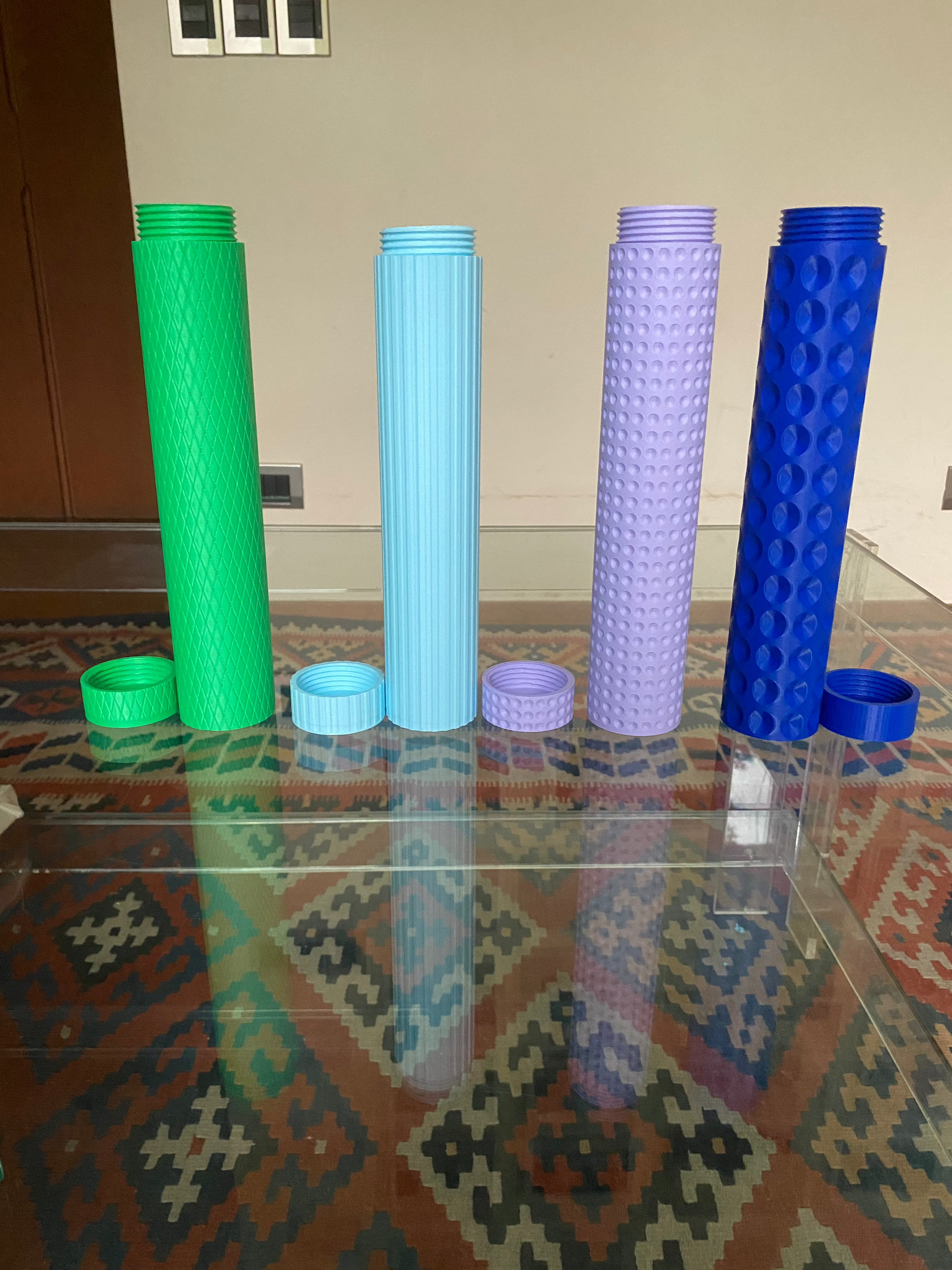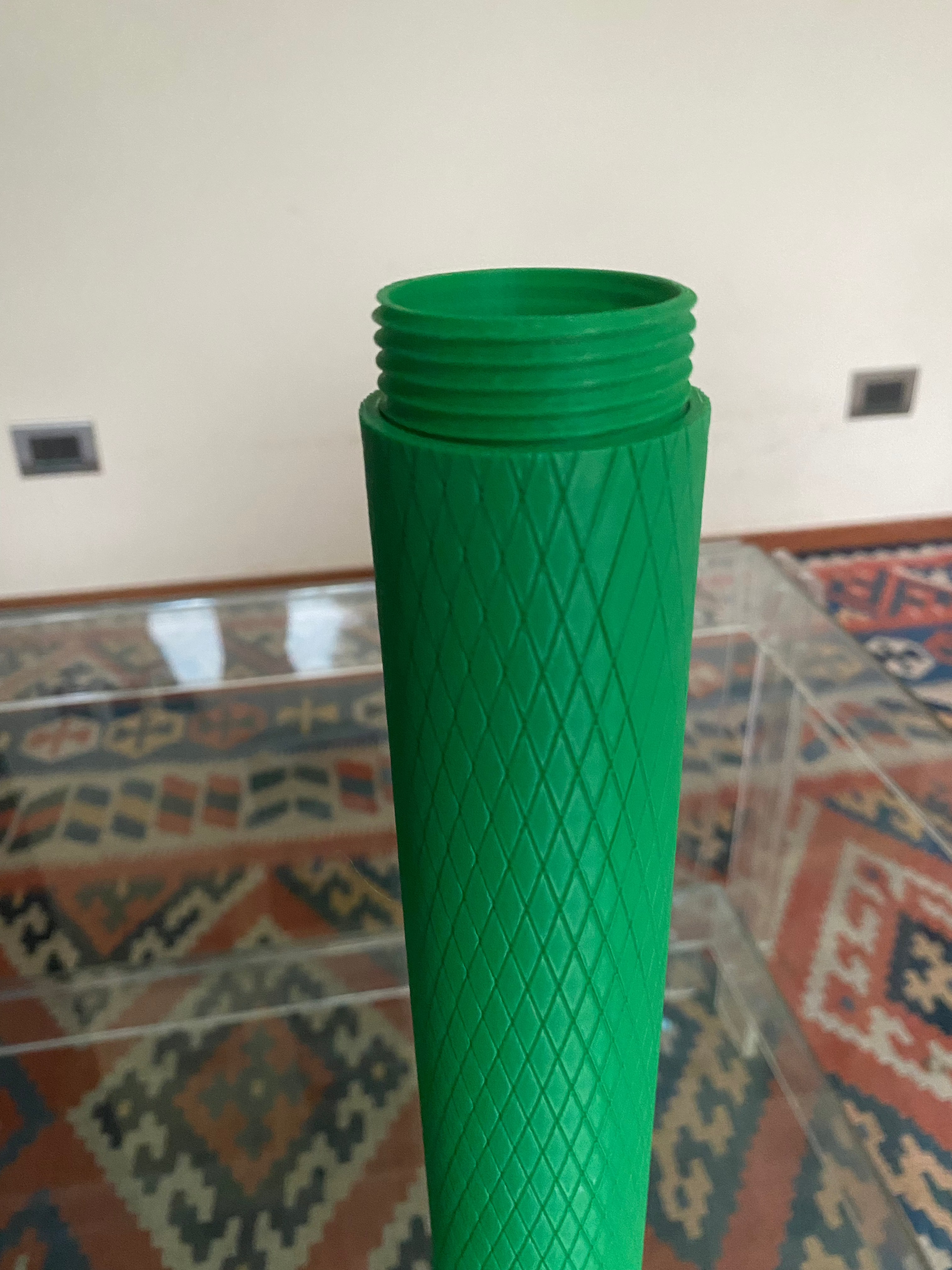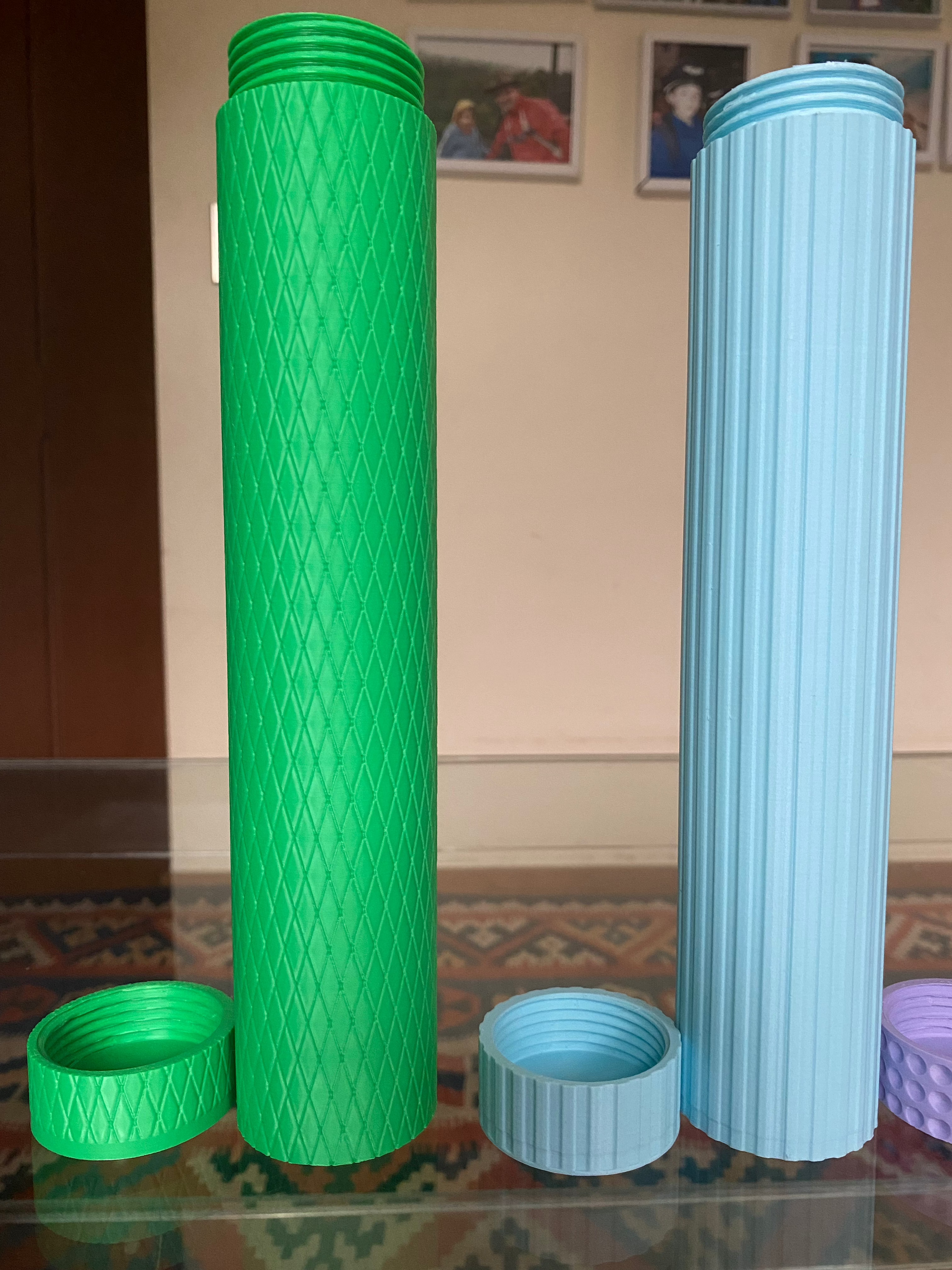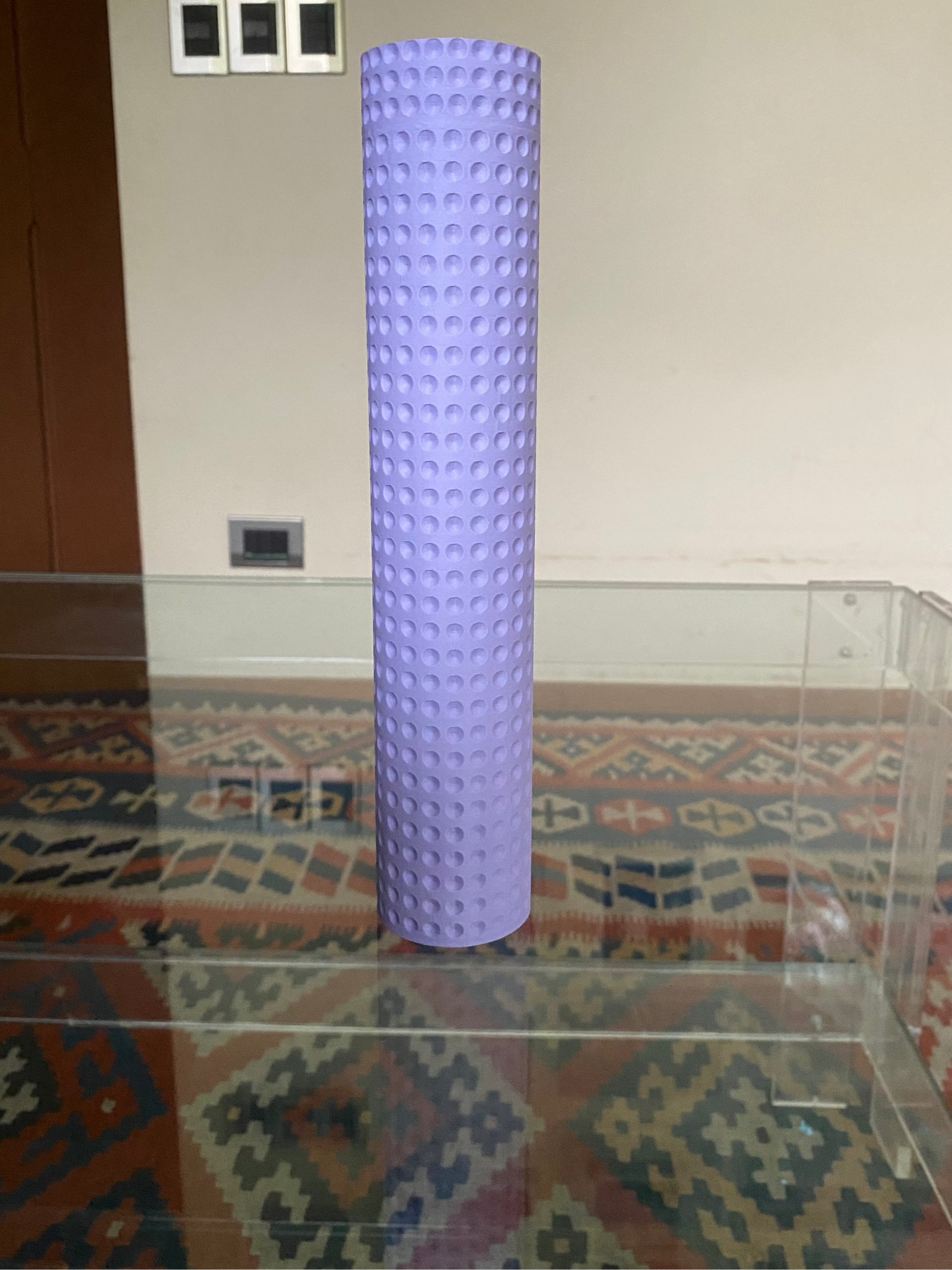 Mide 25 cm de alto y 5 cm de diámetro, ideal para llevar en cualquier bolso.